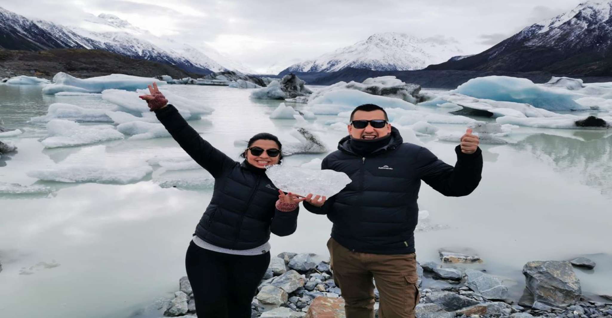 Discover everything the beautiful Mount Cook and Tasman Glacier area has to offer on a guided small-group full-day trip from Queenstown. Meet your small group early in the morning and hop on the minivan which will take you to the Tasman Glacier, stopping at some of the area's most iconic sights along the way. Make your way through the Kawarau Gorge, passing the Kawarau Suspension Bridge and of course the famous Roaring Meg Lookout. Drive past sights such as the beautiful Lake Dunstan, Lindis Pass, and the Cromwell wine region, stopping for photos along the way, before arriving in Omarama. Here, spot Merino sheep and sample New Zealand's creamiest chicken pie before continuing to Lake Pukaki, where you can spot several Lord of the Rings filming locations. Next, get ready for the adventure of a lifetime with a Tasman Glacier Heli Hike. Combine the excitement of walking on New Zealand’s biggest glacier with the stunning scenic helicopter fly-bys of New Zealand’s largest mountain, Aoraki/Mt Cook. After flying to a remote part of the glacier, follow your guide as they cut steps in the glacier, using skills handed down from New Zealand's mountain pioneers. Finish your hike with another spectacular scenic flight back to the base. After your flight, stop for a quick photo stop in Mount Cook village before continuing to High Country Salmon, a local salmon farm, where you can feed the fish and taste some of the freshest salmon in New Zealand. Stop at Mrs. Jones Suncrest Orchard to try or buy her delicious local fruit or real fruit ice cream before returning to Queenstown with your group.