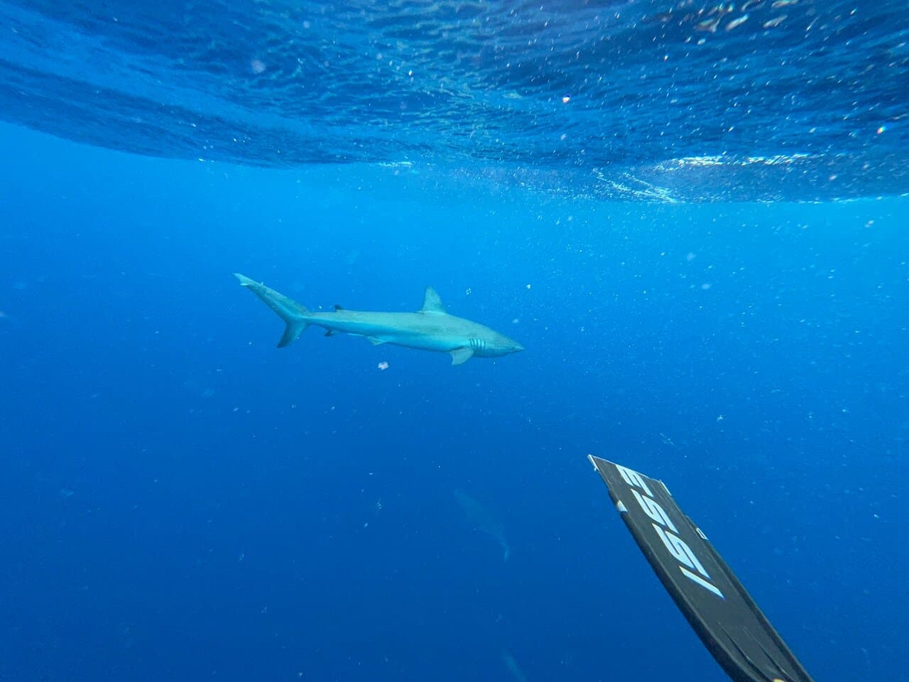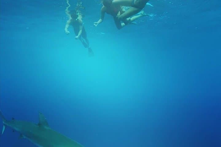 This is a "cage-free" experience where we will be free swimming with sharks for about 40 minutes. No heavy equipment is used. Just us with snorkel gear - so we keep the experience as natural as possible.