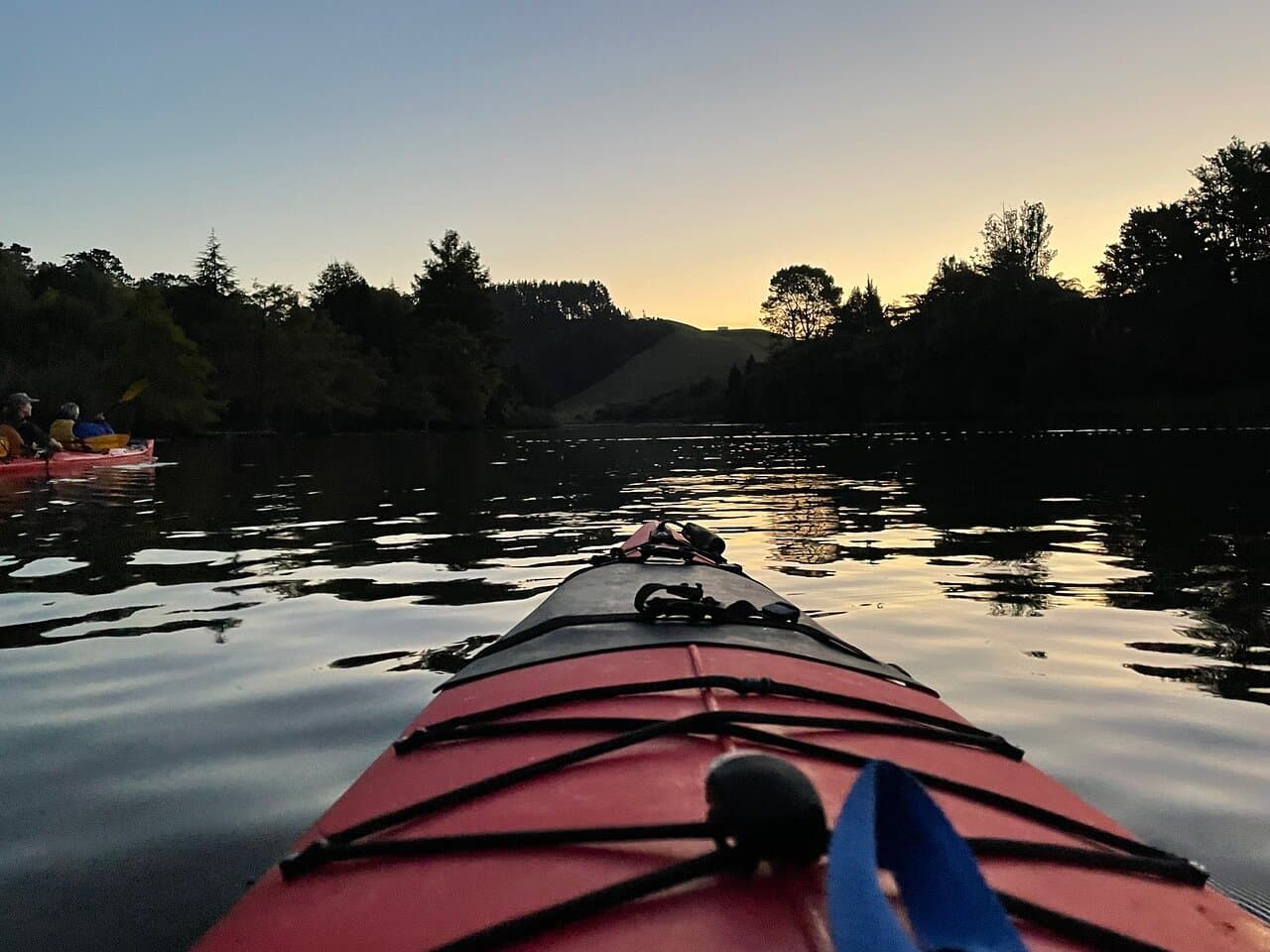 Enjoy light refreshments on the Edge of Lake McLaren prior to departing in double kayaks into the sunset. Here you will discover the birdlife settling for the evening and the gentle splashes of fish (trout) breaking the surface for the final evenings meal. You then paddle to the head of the lake and transition from daylight to darkness through dusk. this is when the stars start coming into view and the glow worms begin to pop from the native bush on the cliffs.