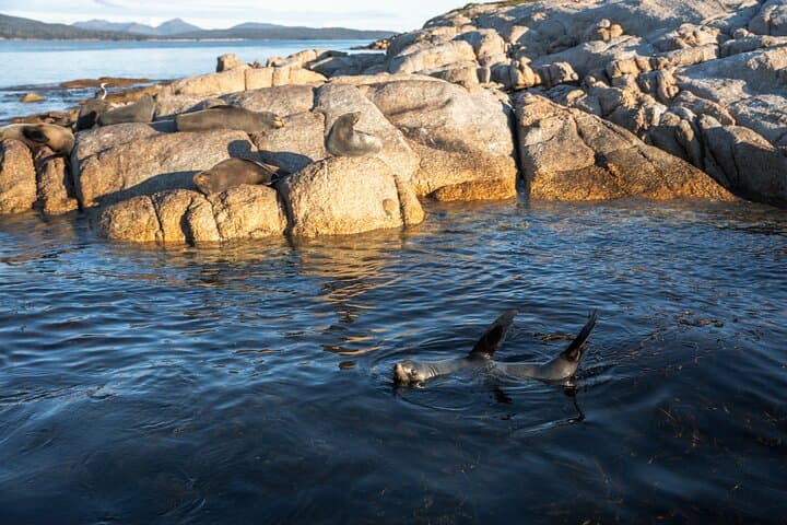 After crossing the coastal Isthmus Track that connects the East and West of the Freycinet Peninsula, take the opportunity to kick your shoes off and walk along the empty stretch of Hazards Beach. At the southern most point of the beach, your guide will throw out a picnic rug and you'll enjoy a delicious gourmet picnic lunch before choosing to take a dip or relax under the shade of a gumtree. There's no need to lace up your shoes, as the Freycinet Aqua Taxi conveniently collects the group from the lunch location and transfers you back to the Freycinet Lodge over the water.