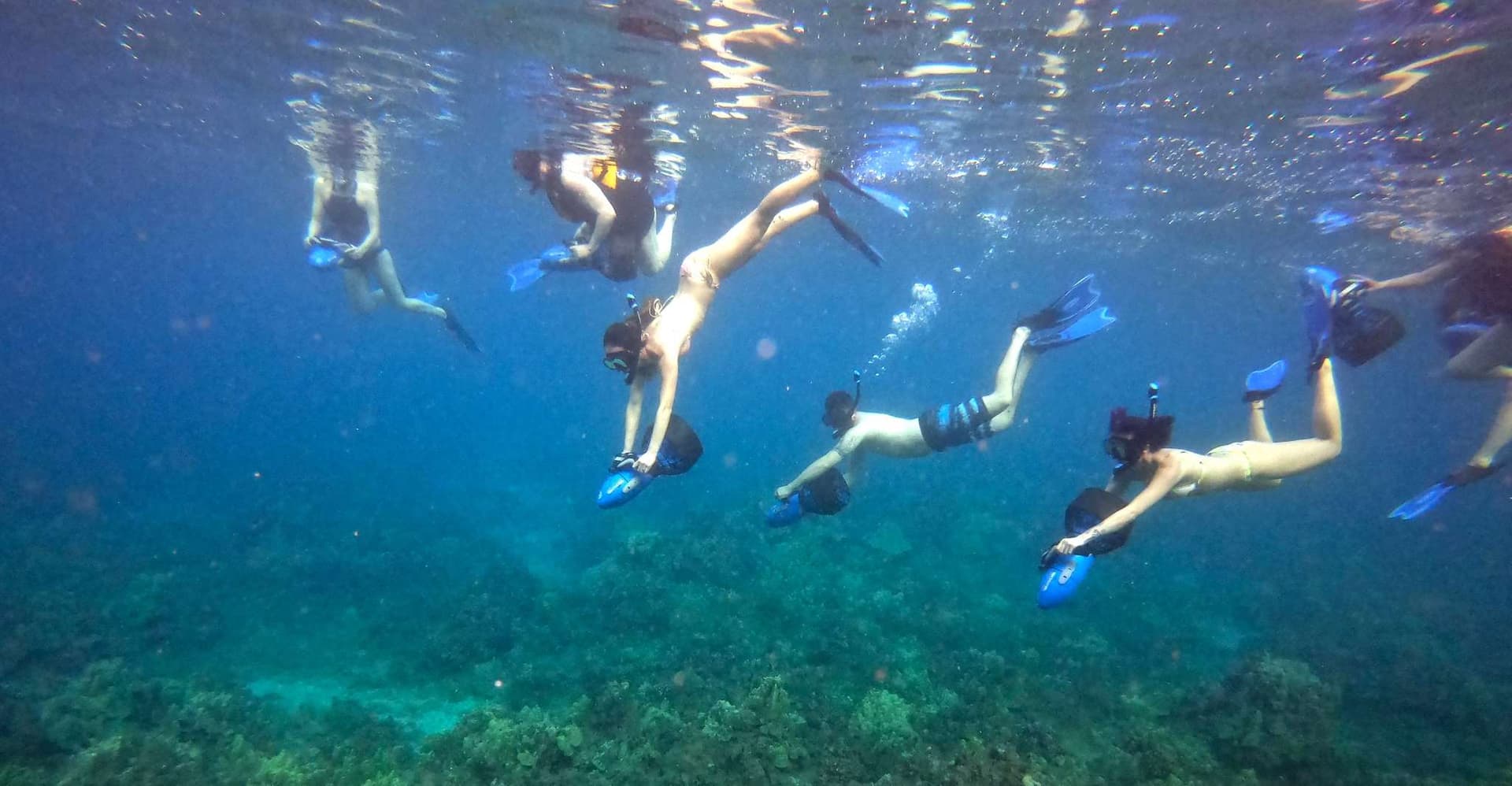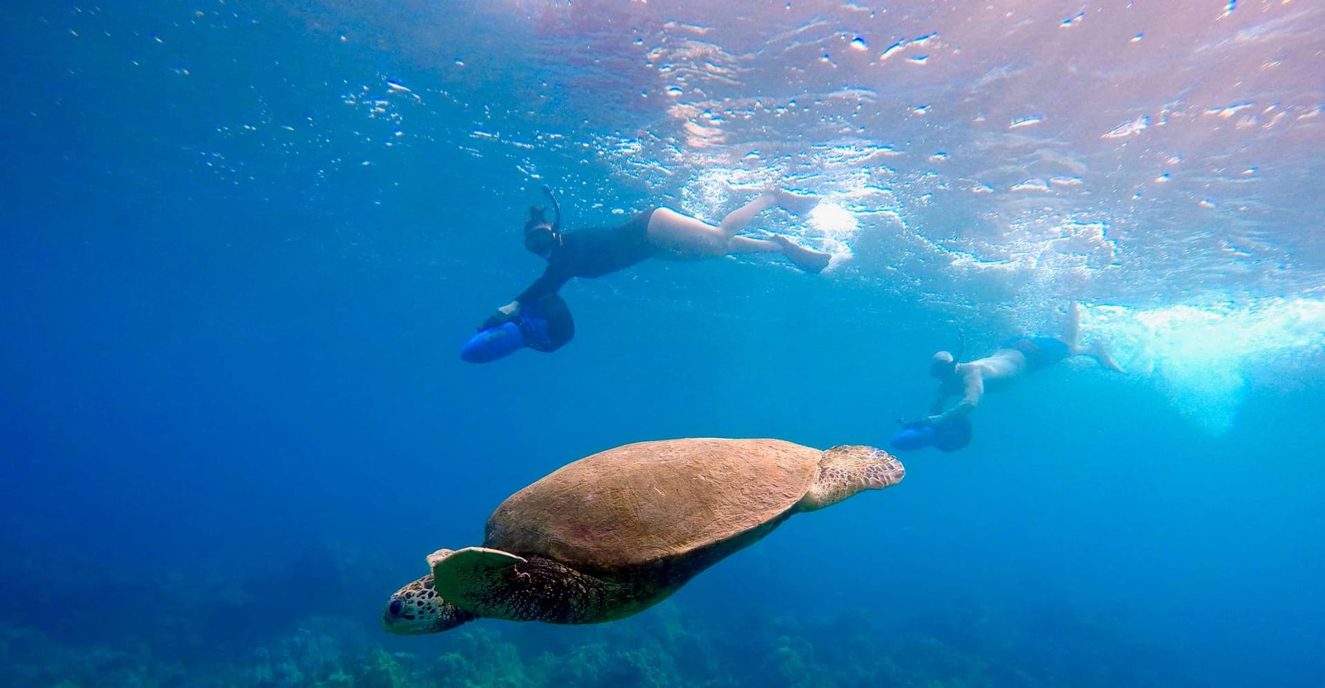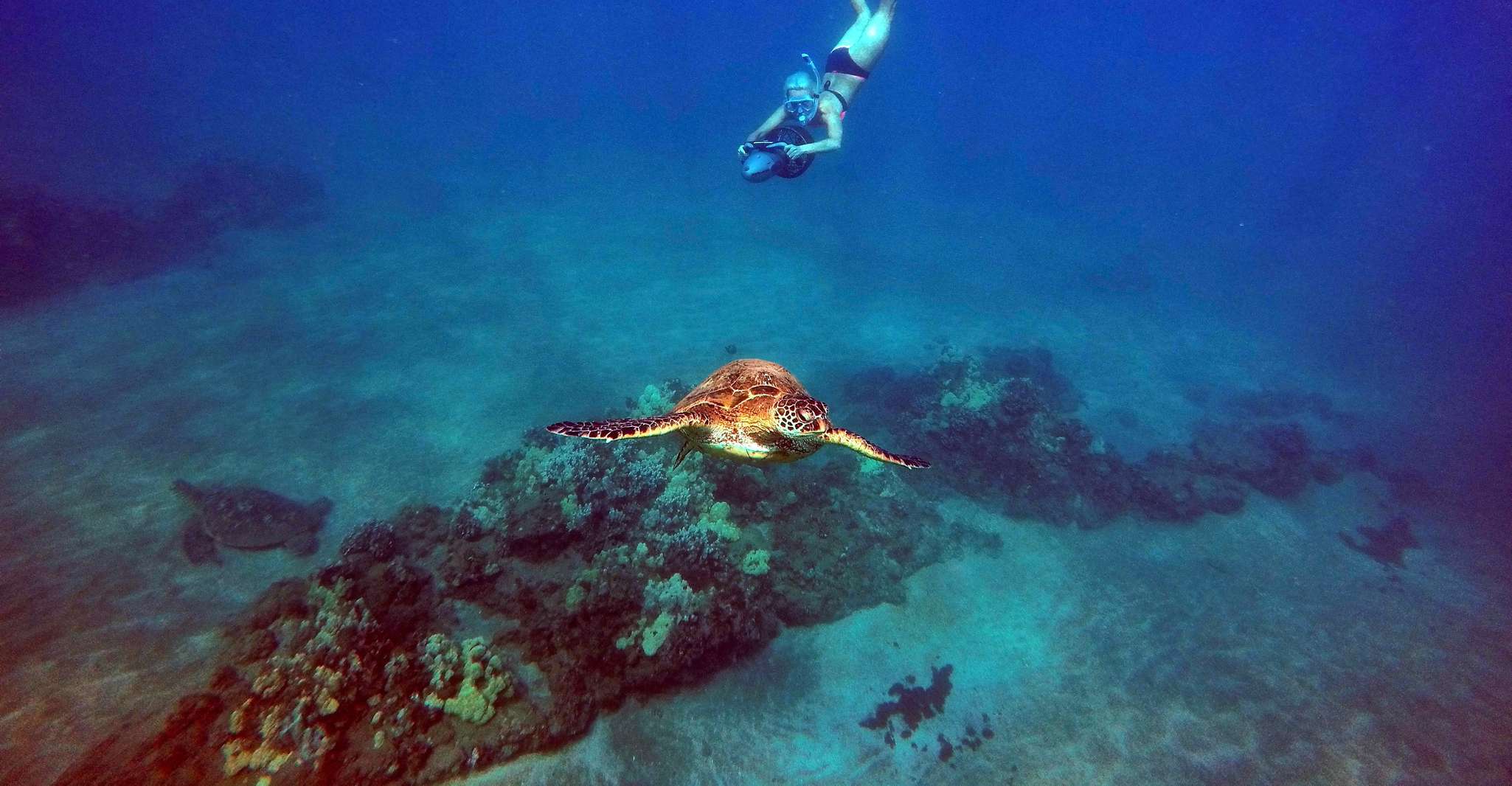 Start the tour directly from the beach, where you’ll meet with your small group which will consist of a minimum of 2 people and a maximum of 8 people. Also meet your 2 certified tour guides, who will assist you throughout your tour. After a quick lesson and demonstration of how to operate the underwater sea scooters, the tour group will move on to one of the best local coral reef homes for Hawaiian sea life. Discover green sea turtles, starfish, butterflyfish, octopuses, rays, eels, and more. Throughout the tour, your guide will point out various species that inhabit the bay of Wailea Beach, Turtle Town, and other local reefs. It is also possible to see manta rays and lots of turtles on any tour. Every trip is unique, as you will see different marine life each time. The area you will explore is remote and far from all the crowds, allowing for a more private experience.