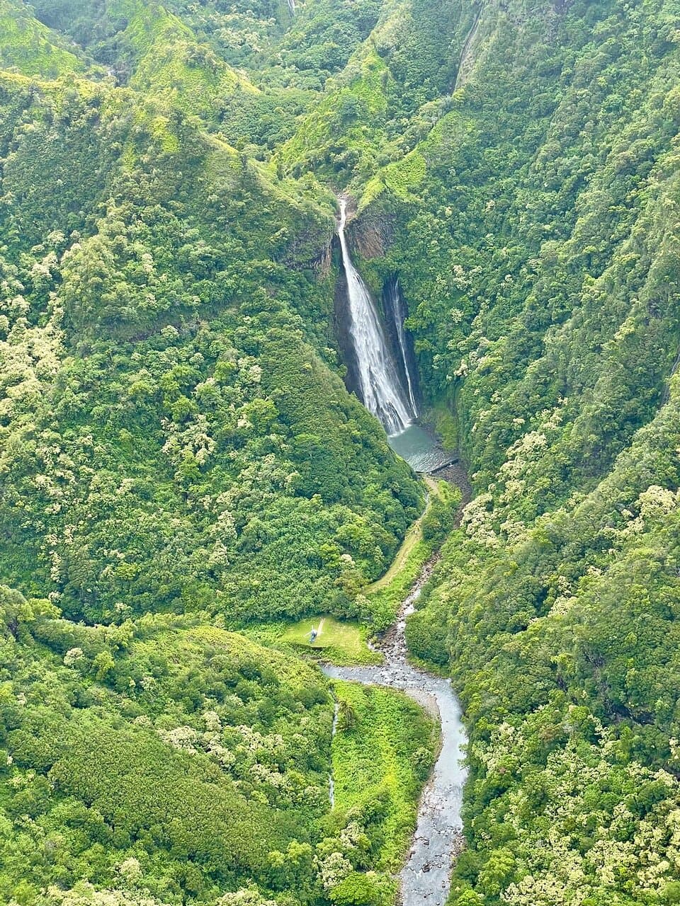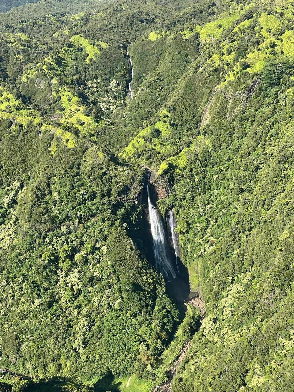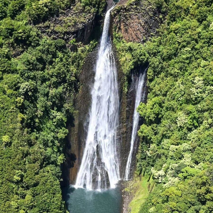Also known as “Jurassic Park” falls, wedged in between the emerald green mountain top of the Hanapepe Valley.