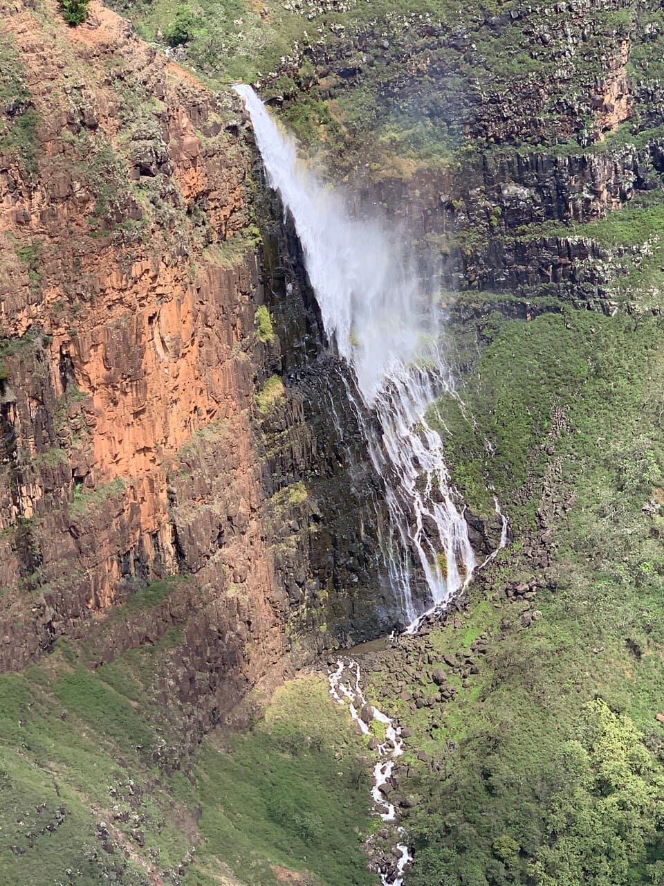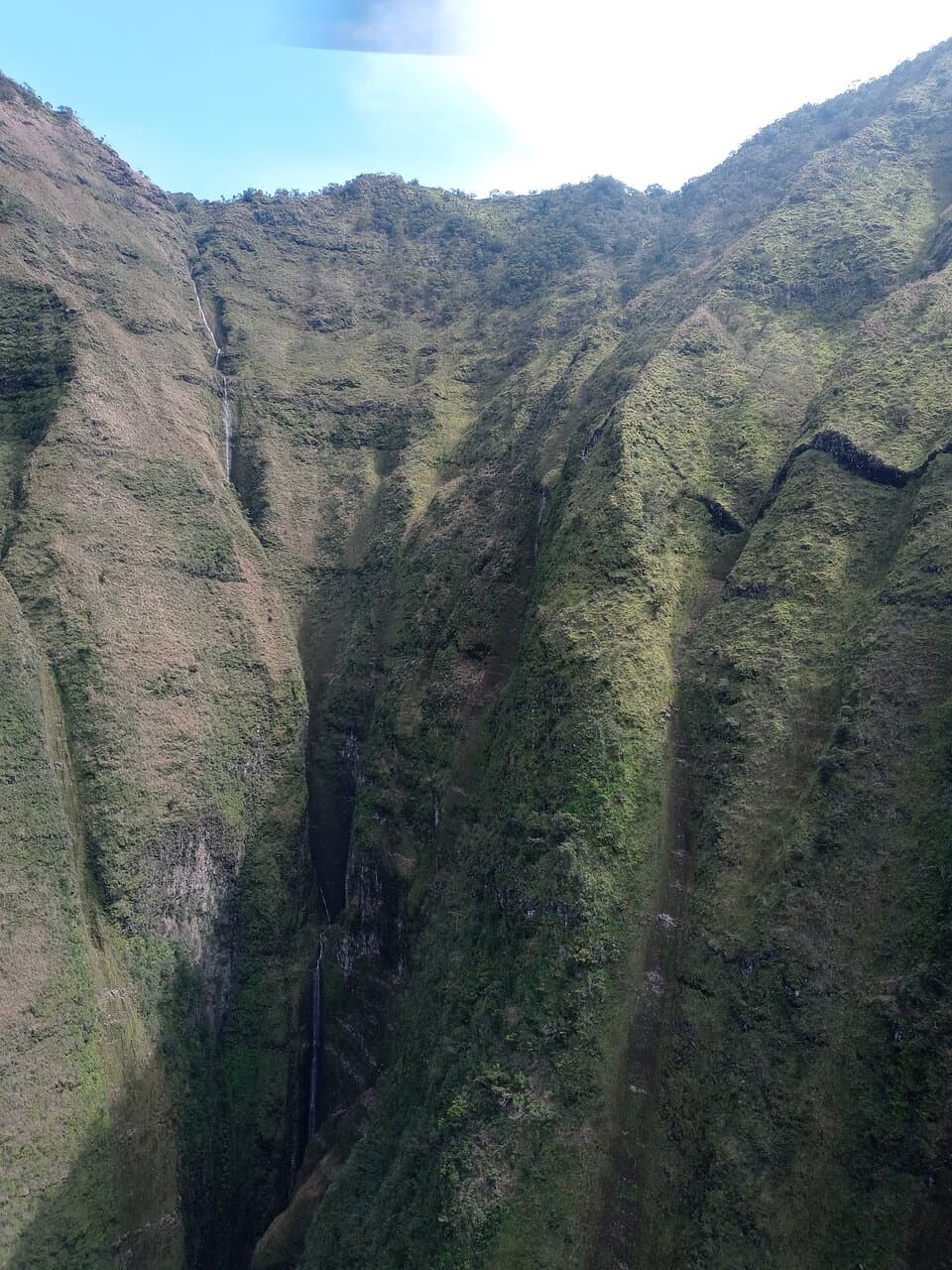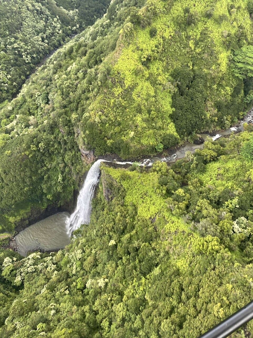 Also known as “Jurassic Park” falls, wedged in between the emerald green mountain top of the Hanapepe Valley.