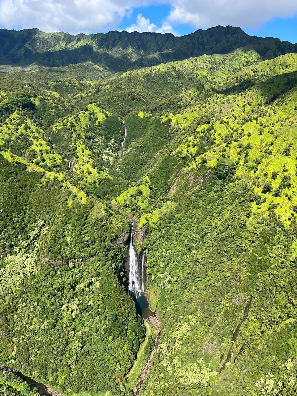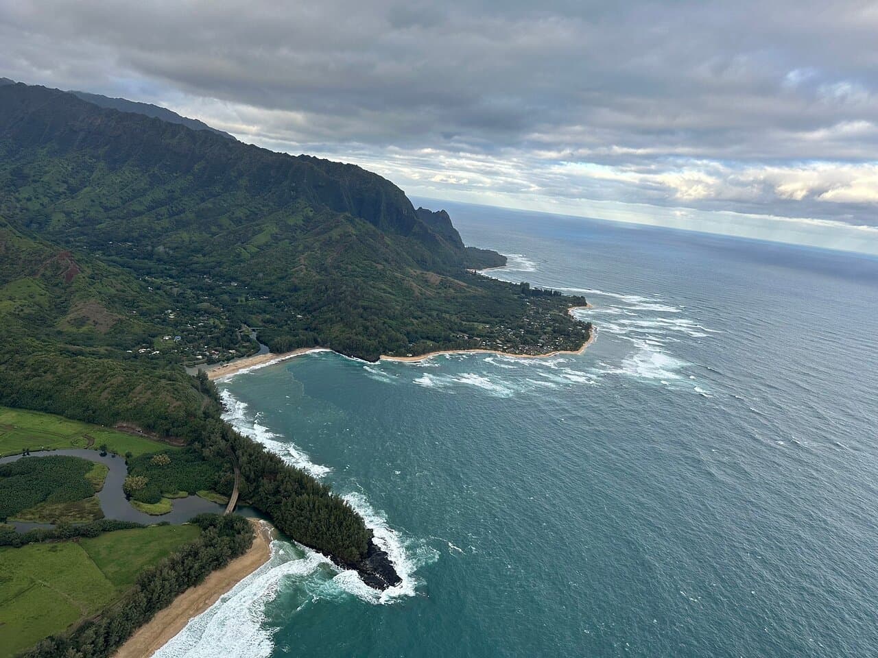 Hanalei Valley with the 3000' Namalokama Waterfalls.