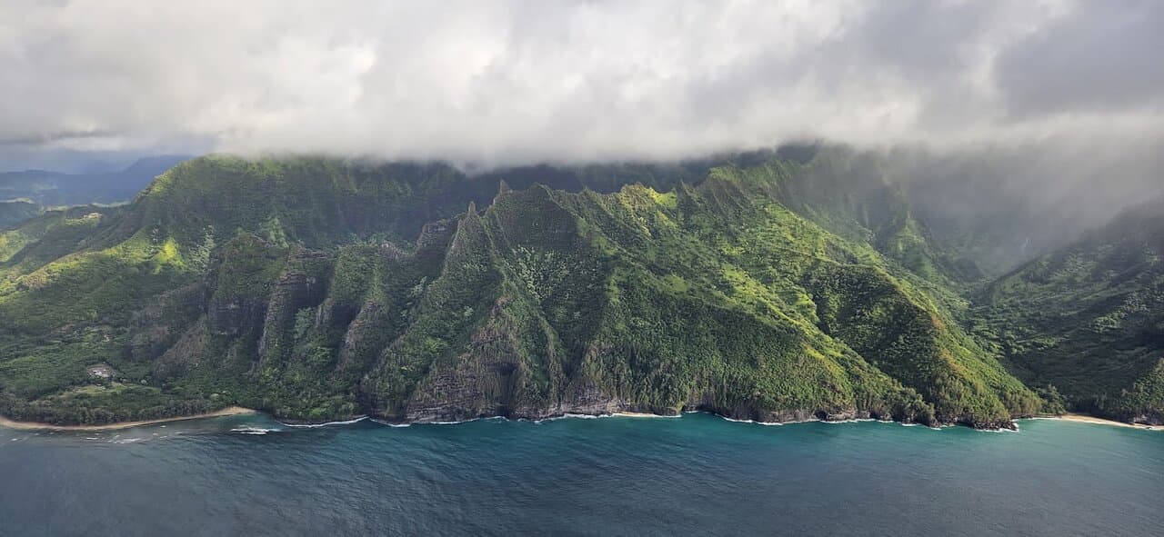 Napali coastline with its cascading cliffs.